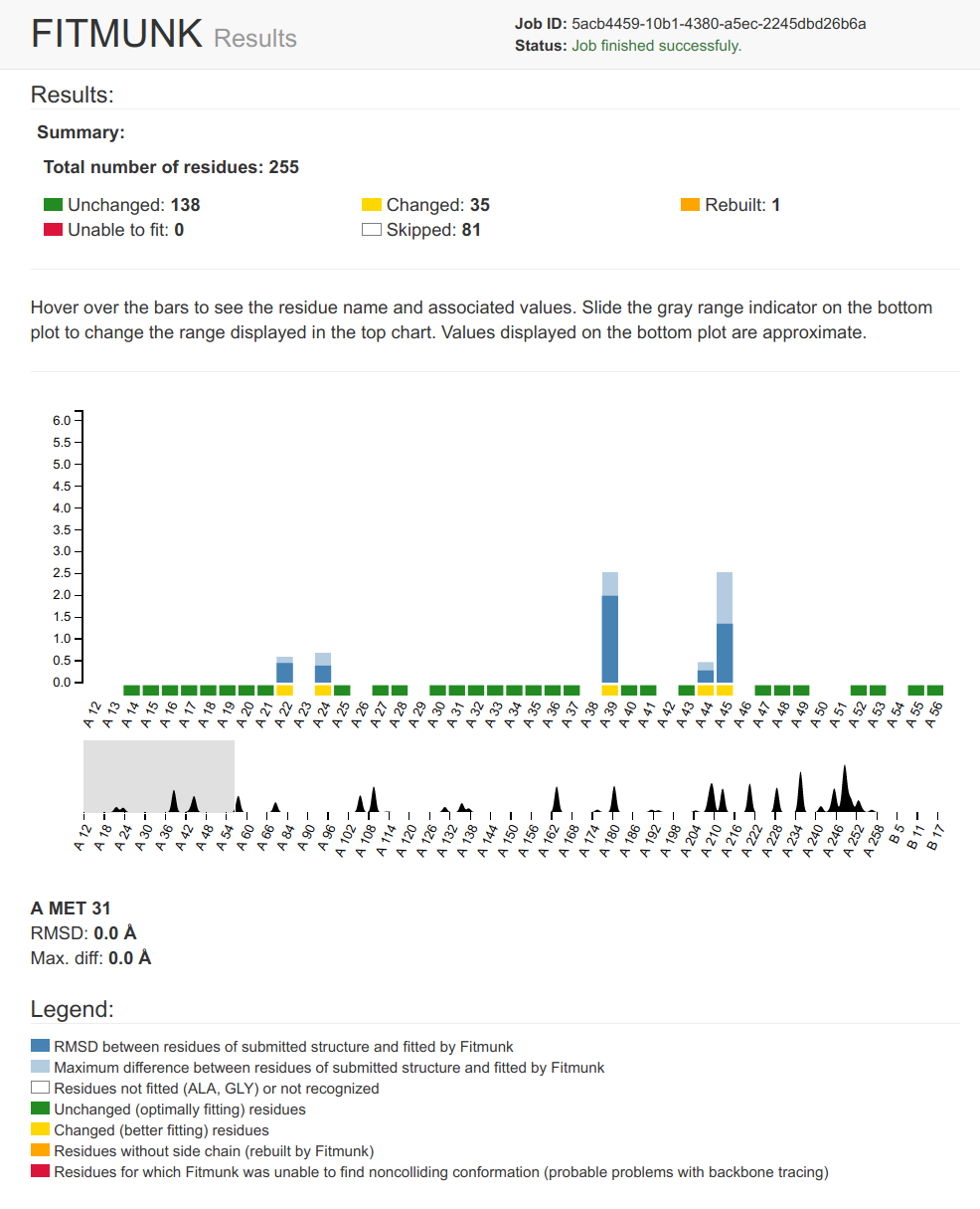FitMunk is a online tool designed to automatically improve the accuracy of side chain placement. Using extensive conformational sampling and a novel hybrid energy function, Fitmunk can help improve the quality of crystallographic models, especially at medium and low resolutions. Although particularly useful during the early stages of refinement, Fitmunk can also be used to validate existing structures.