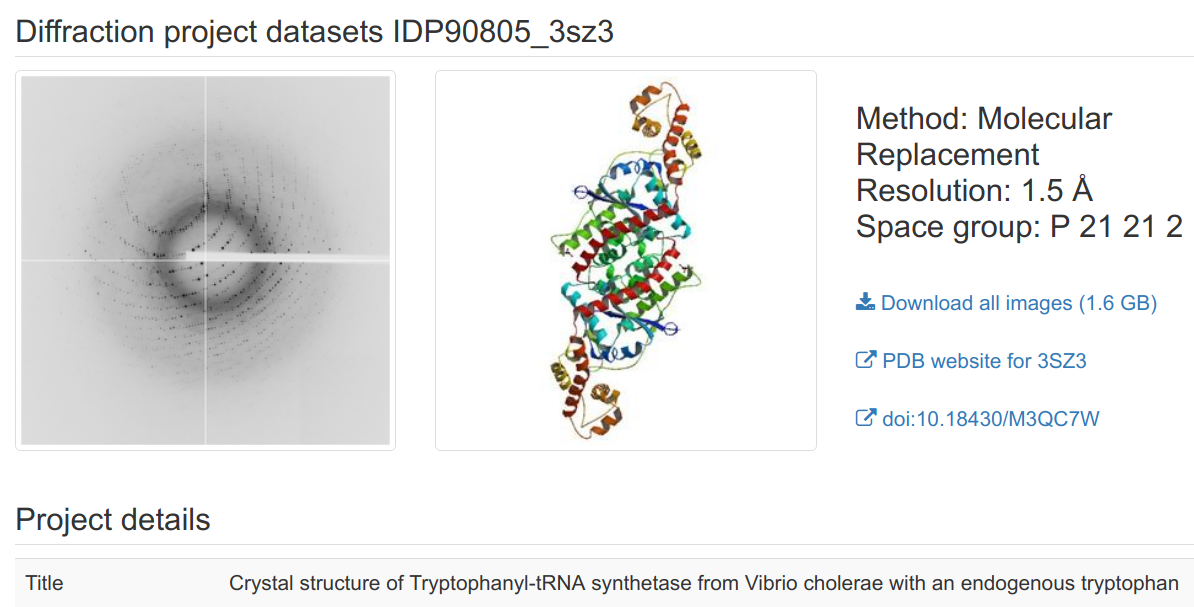 Officially known as the Integrated Resource for Reproducibility in Macromolecular Crystallography (IRRMC), proteindiffraction.org provides a means for crystallographers to archive their raw diffraction images. The site currently maintains over 6400 datasets for over 3400 projects as well as the metadata to allow processing the data. This resource also allows archival of unsolved data sets, which can permit data solution when molecular replacement models become available or newer crystallographic algorithms can solve the phase problem.